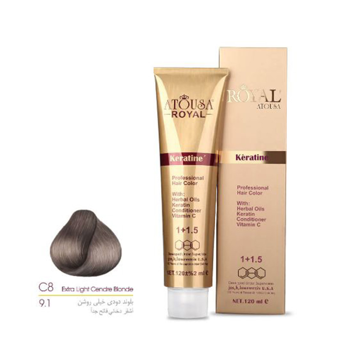 رنگ موی آتوسا رویال atousa royal شماره c8-9.1 بلوند دودی خیلی روشن حجم 120 میل