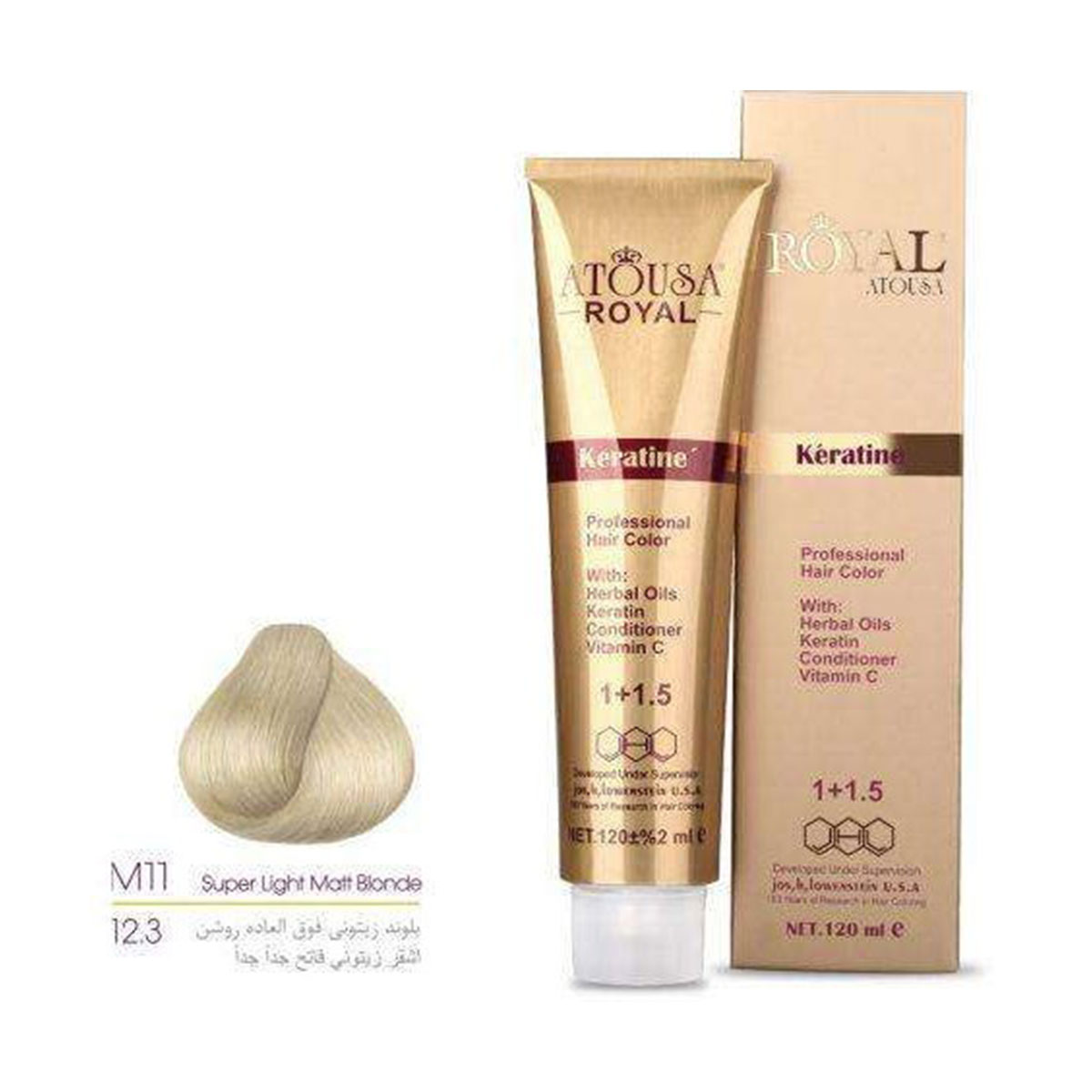 رنگ موی آتوسا رویال atousa royal شماره m11-12.3 بلوند زیتونی فوق العاده روشن حجم 120 میل