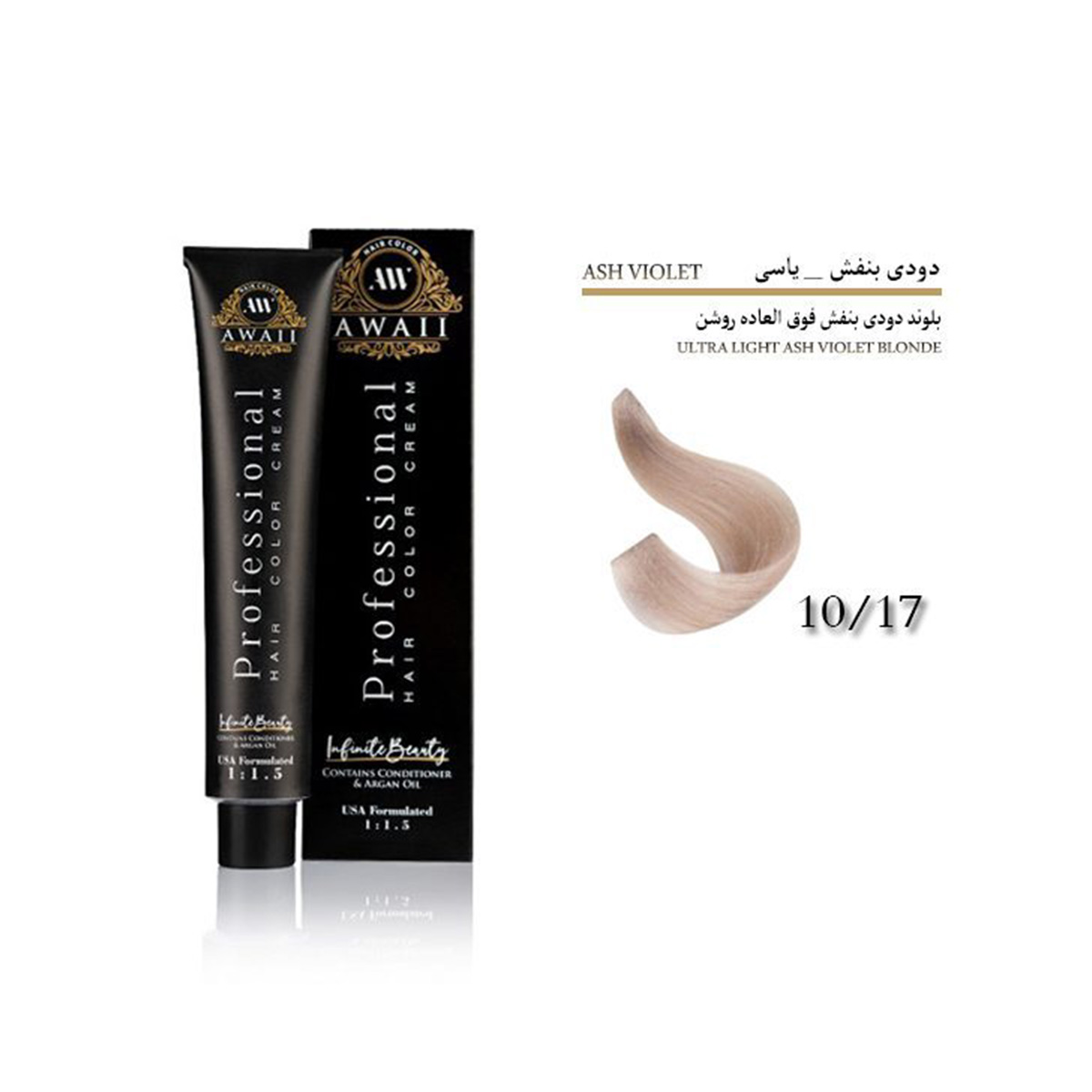 رنگ مو آوایی شماره 10.17 حجم 120 میل رنگ بلوند دودی بنفش فوق العاده روشن Awaii