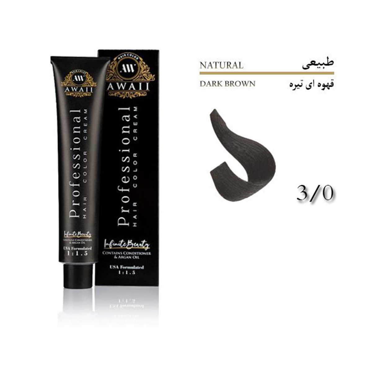 رنگ مو آوایی شماره 3.0 حجم 120 میل رنگ قهوه ای تیره Awaii