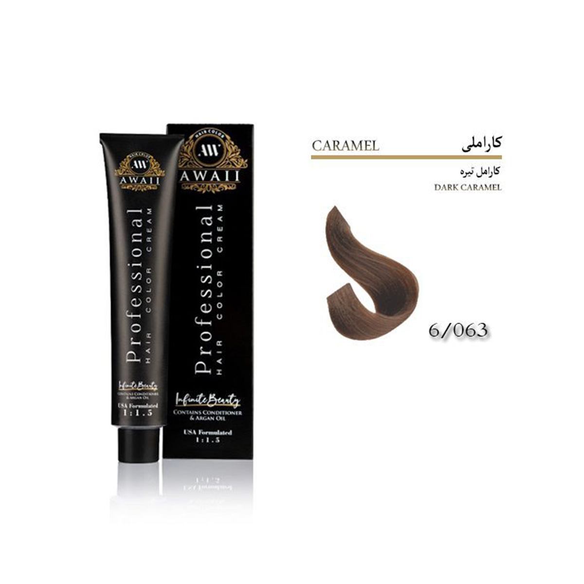 رنگ مو آوایی شماره 6.063 حجم 120 میل رنگ کارامل تیره Awaii