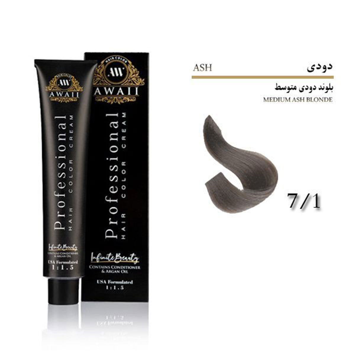 رنگ مو آوایی شماره 7.1 حجم 120 میل رنگ بلوند دودی متوسط Awaii
