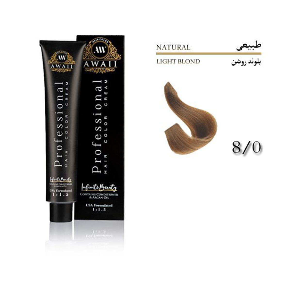 رنگ مو آوایی شماره 8.0 حجم 120 میل رنگ بلوند روشن Awaii